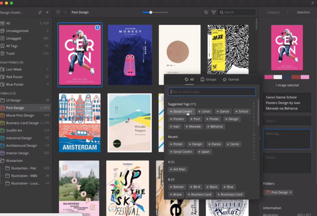 可以简单理解为这是图片管理类的印象笔记,通过 Eagle 你可以更高效的方式「收藏、整理、搜索」你数以千计的图片素材,所以这款软件尤其适合设计师、摄影师等从事视觉设计方面工作的人。