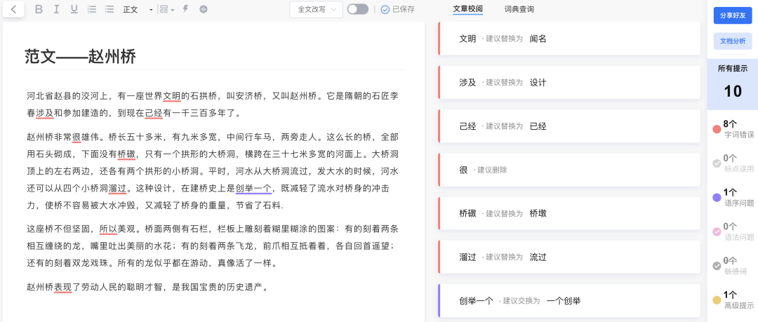 它可以帮你修改错别字、推敲用语、斟酌文法、改写文风、优化排版,实时同步翻译。