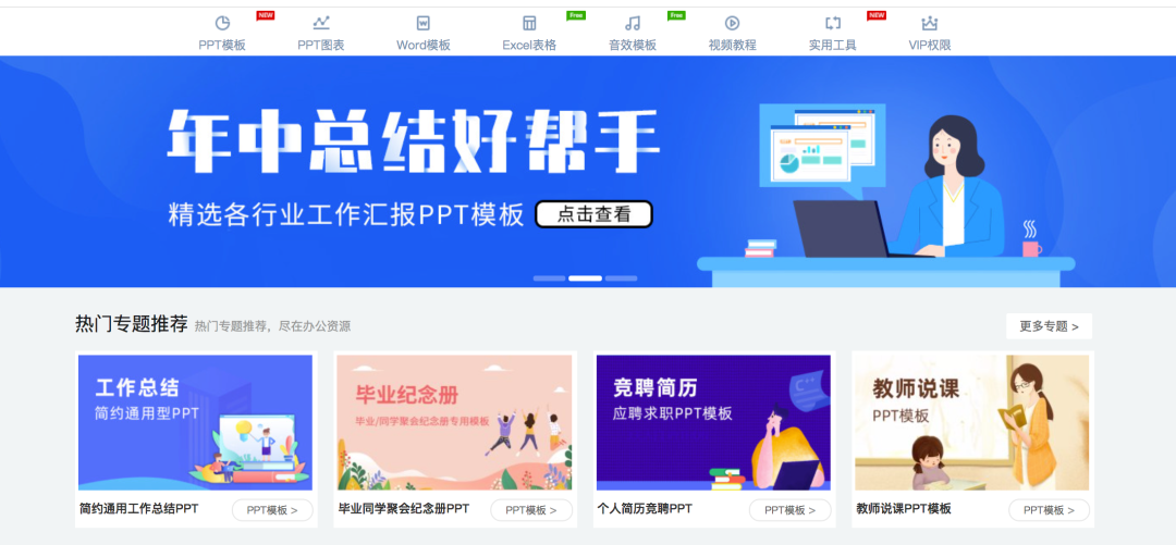 网站内资源非常丰富,基本有我们日常办公所需的各类模版资源,比如 PPT 模版、PPT 图表、Word 模版、Excel 模版。