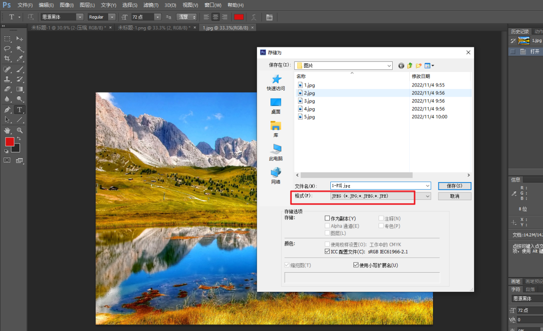 接着会让你选择图片保存的位置,自己选择一下就行,这里注意格式的位置一定要选择JPEG格式,选好之后点击【储存】。
