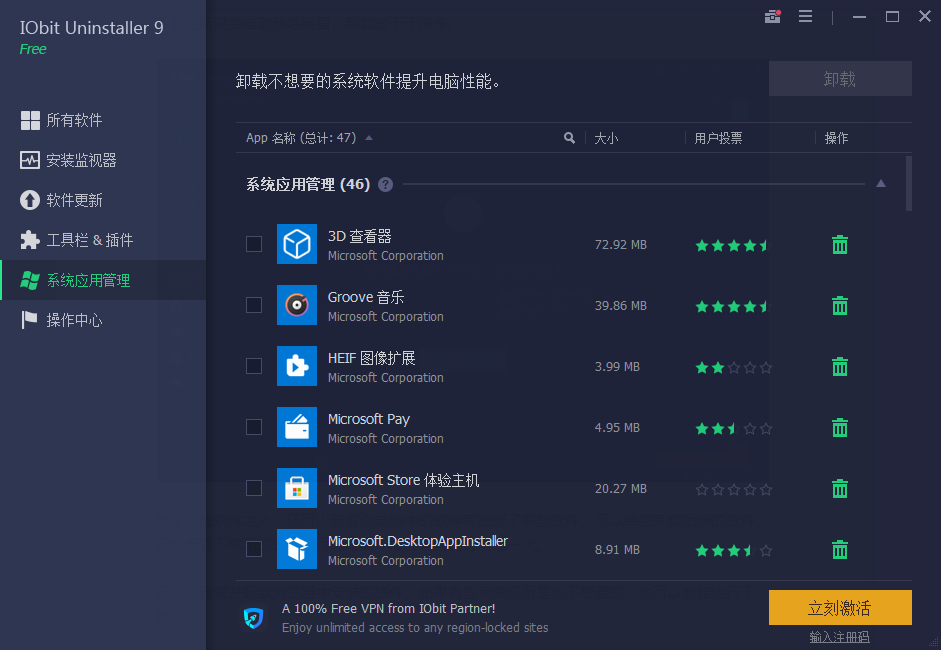 我使用的是免费版,功能差不多可以满足我们日常卸载流氓软件的需求,如果想要更多功能,可以付费激活。