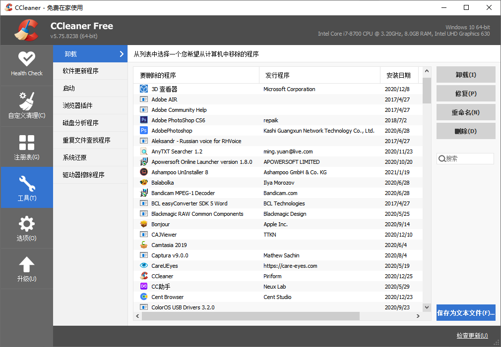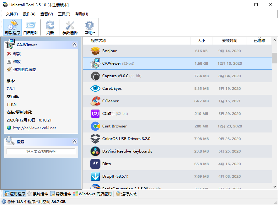 CCleaner跟前面几个软件不同,主打的是电脑的清洁,不过其中也包括软件卸载的功能,再加上强大的清洁功能,当做一个卸载工具使用也是可以的。