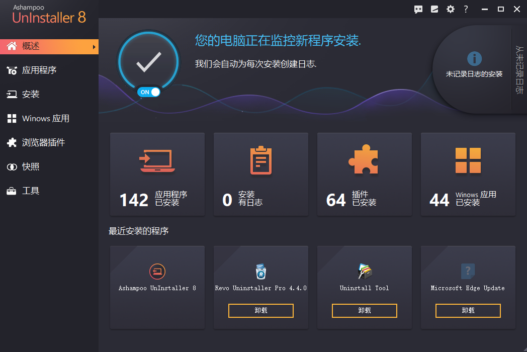 而且还能一键开启监控新程序的安装情况,然后自动为每次安装创建日志,方便你之后更干净的卸载安装的软件。