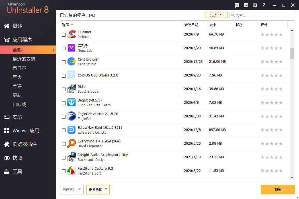 在应用程序里可以选择一个或者是多个应用进行卸载,卸载时候可以选择执行额外的深度清洁,这样子就能把流氓软件以及安装它留下的痕迹都清理的干干净净。