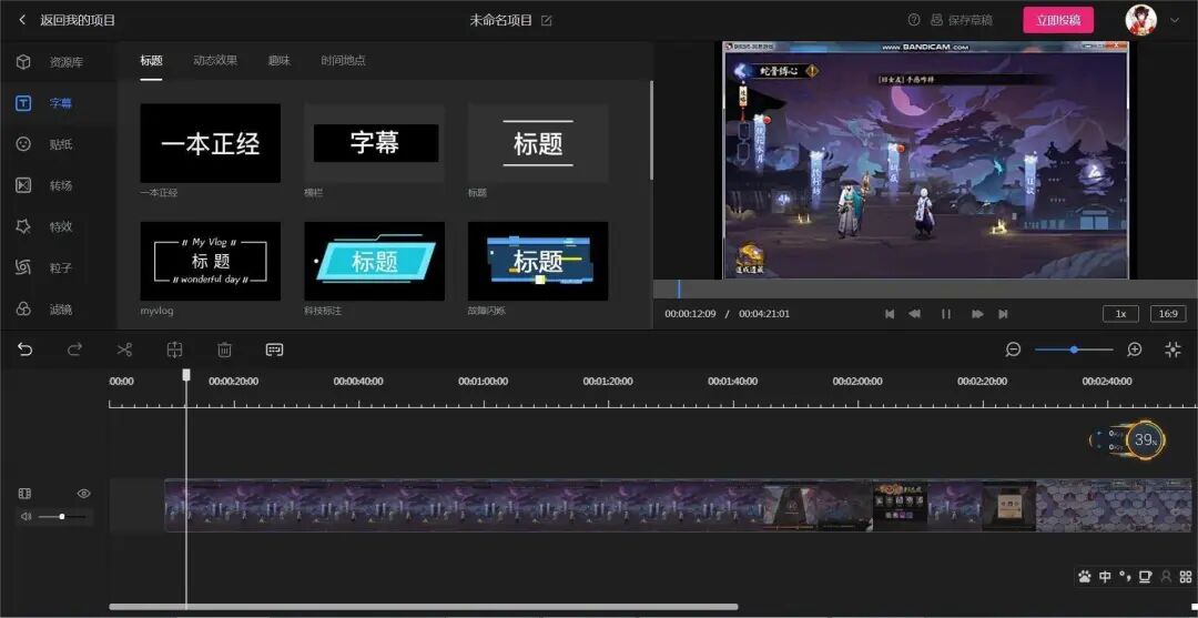 内置海量 B 站风格素材(热梗贴纸、专属音效、字幕模板、热门 BGM),均为平台授权,可免费用于 B 站投稿内容