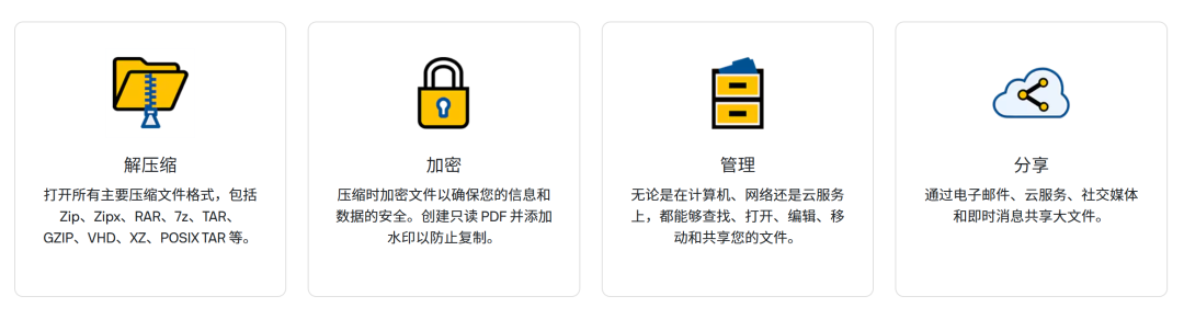 可压缩、保护、管理和共享最重要的文件和文件夹。