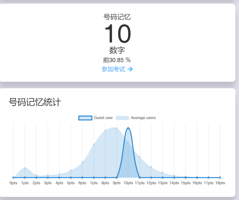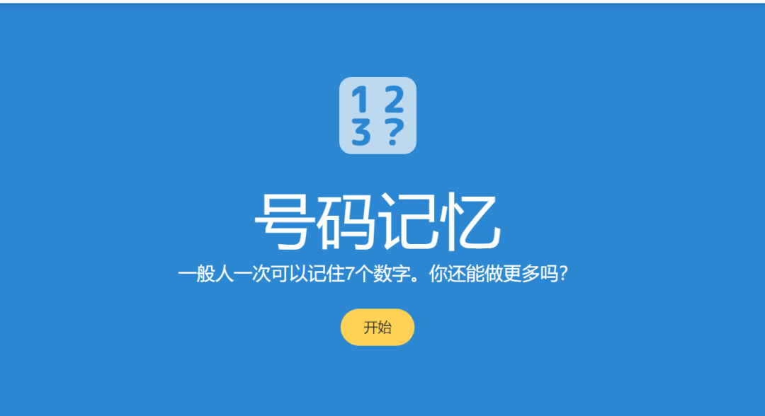 会随机生成数字,你去记忆,刚开始的时候,很简单,后面慢慢的不同。你在这个游戏过程中,发现自己,并且网站还会为你计分。