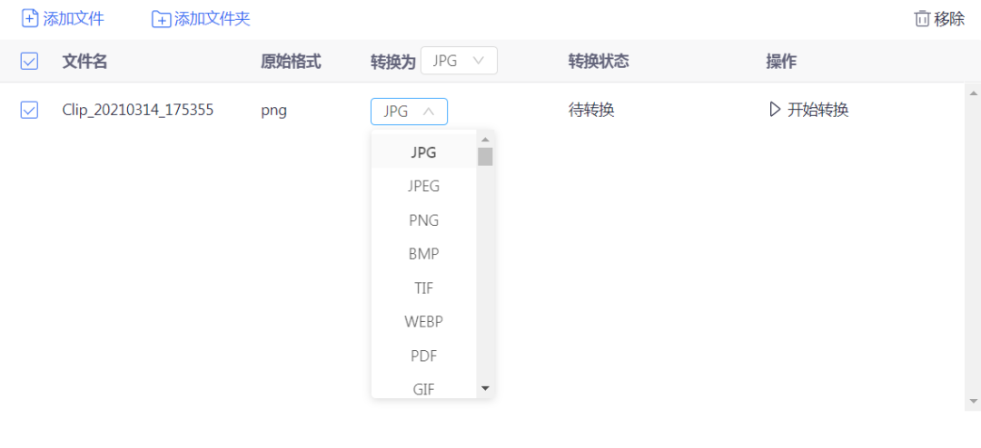 首先是主要的图片格式转换功能,100多种图片格式之间支持一键互换,支持批量添加进行转换。