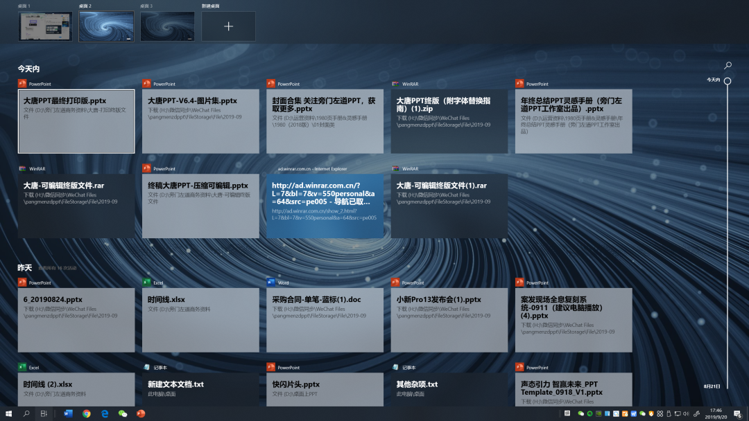 使用「Win 键+Tab」便可以开启虚拟桌面了!