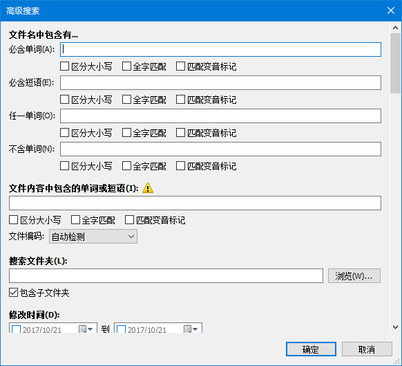 Everything 支持通过正则表达式进行文件匹配,所有搜索结果都可以近乎实时显示,且所消耗内存极低。如果你对正则表达式不太精通的话,也可以使用它自带的高级搜索功能。