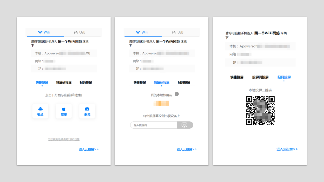 2.支持多渠道进行连接,轻松一键投屏