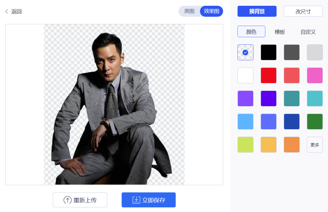 整体效果可以看到非常不错,细节也做到位了,扣完后就可以直接更换背景颜色、模版图片或自定义图片等。