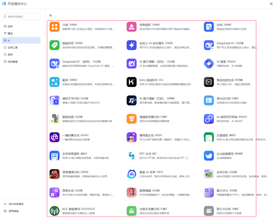 最后一个是近期爆火的飞书多维表格,聚合了非常多的AI功能,比如deepseek、AI绘画、AI提取文案等,我觉得这功能是内容创作者的必学项,而不是可选项。