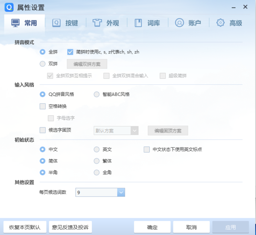 软件可以设置全拼、双拼、输入风格、按键、外观,还可以导入词库。