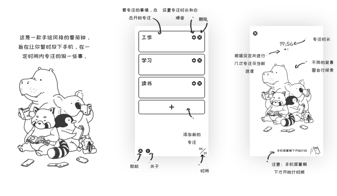 一个非常可爱的手绘专注软件,它的页面颜值很高,可以帮助你专注学习、工作、读书、冥想、甚至监督你不玩手机。