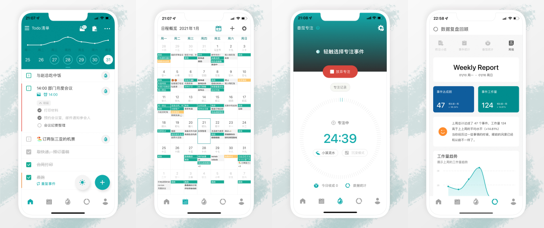 它是一款简而美的待办清单工具,通常用于日程管理,以规划和备忘为主,番茄钟为辅。