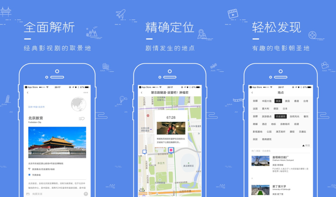 一个专门提供影视取景地信息的APP,几乎收集了国内所有的著名影视取景地,非常适合旅行的朋友进行打卡,打开就能看到当下正在热映的影视取景地