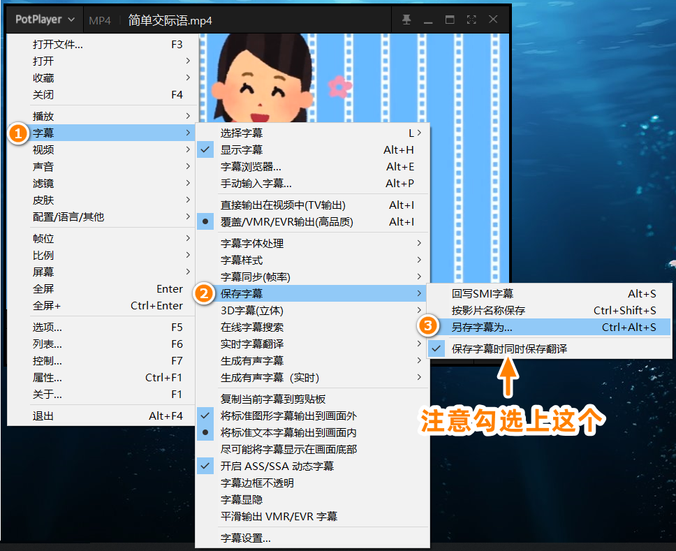 之前仔细研究了一下,发现Potplayer其实也能保存翻译后的字幕,就是操作起来稍微麻烦点。