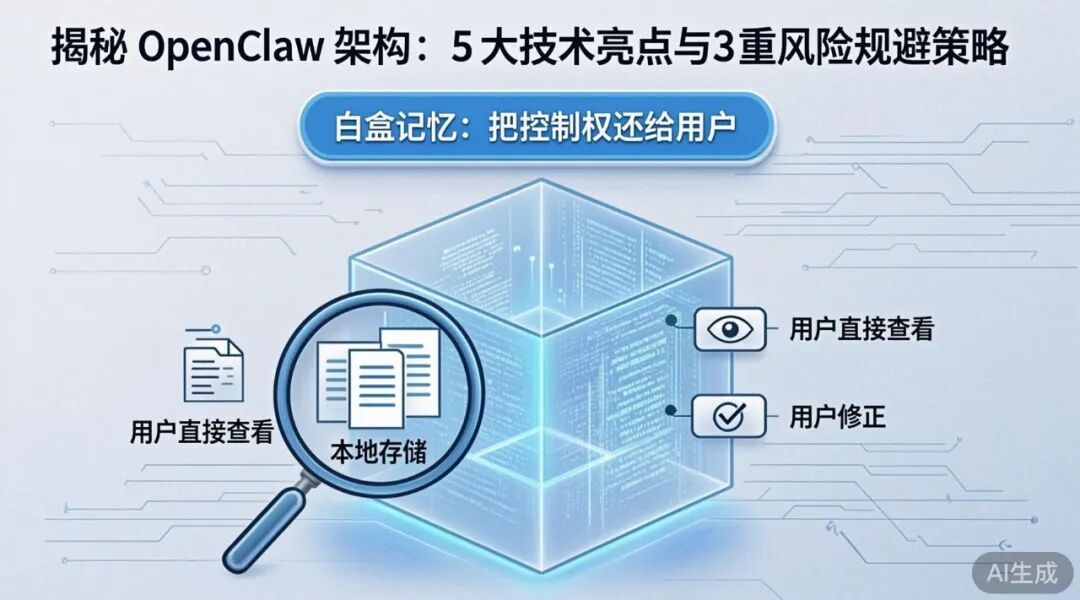 概况OpenClaw 采用“反 RAG”策略,将长期记忆以 Markdown 文件形式存储于本地,用户可直接查看、修正这些记忆文件,实现记忆的白盒化管理。