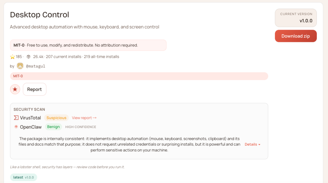 还有一个ClawHub上的桌面控制的Skill,叫Desktop Control,star数还不低。