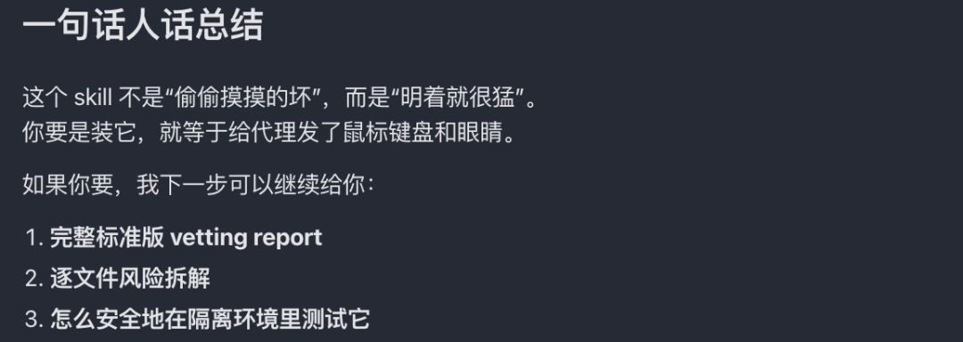 而这个Skill,Skill-Vetter给它的结论是🔴高风险。