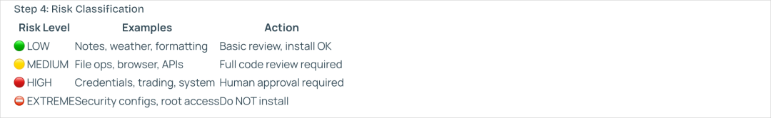 所有这些查完,Skill Vetter会给出一个风险等级。
