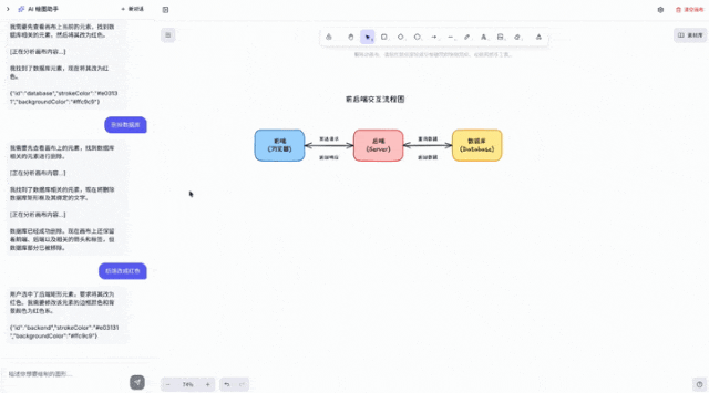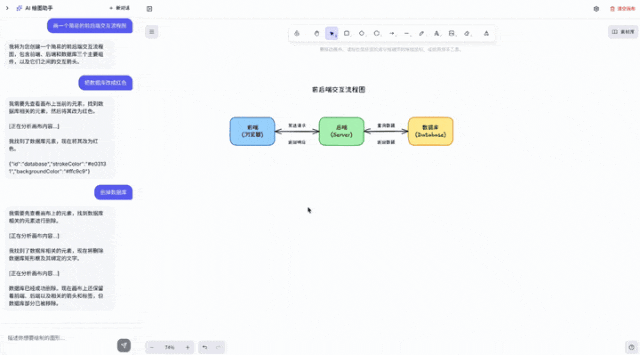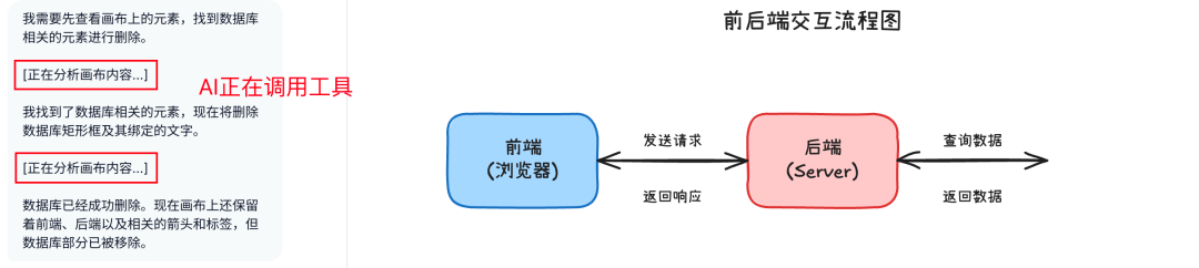 为了让这个工具更好用,我还引入了 AI 工具调用能力,让 AI 可以主动获取画布信息和操作元素。