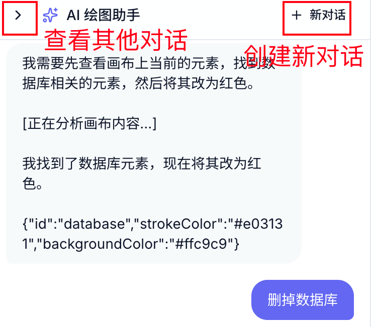 之前的版本所有会话共享一张画布,很容易互相污染,不好管理。所以这次更新支持了多会话管理,可以同时维护多个独立的画布和对话历史。