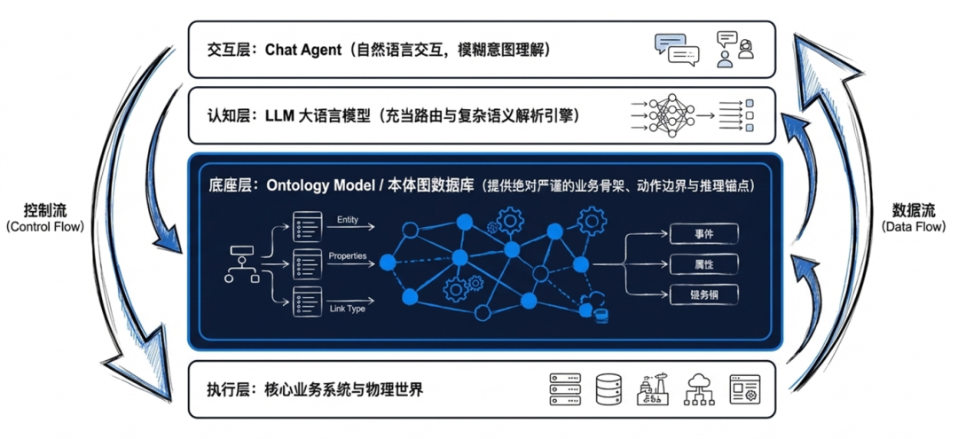 本体模型是构建ai原生企业或组织的基础。我在扩展讲下我这句话的意思,传统的数字化即已经有了现实世界,和虚拟数字世界,然后再找方法将其粘合为一个整体。类似当前已有IT系统上面增加AI赋能全部是这个模式,包括palantir本体论也是这个思路,即构建本体来打通数据到业务。也就是树都长出来了,你来将枝叶缝合到一起,这个不能叫AI原生。新的本体+AI的思路是一开始就构建底层的本体模型,本体模型一方面支撑IT应用构建,一方面又为后续虚拟世界到现实世界的连接构建了足够的业务语义,方面自然语言的交互。大家都是从树根长出来了,天然就是融合一体的,完全不需要后天粘合。为何AI大模型没出来前这个思路不行,类似企业架构本身也体现本体思想,但是一到后面落地就变成了4A架构,因为对于太大组织或系统,为了方便人解决问题必须分解,但是分解自然就带来了集成的问题。