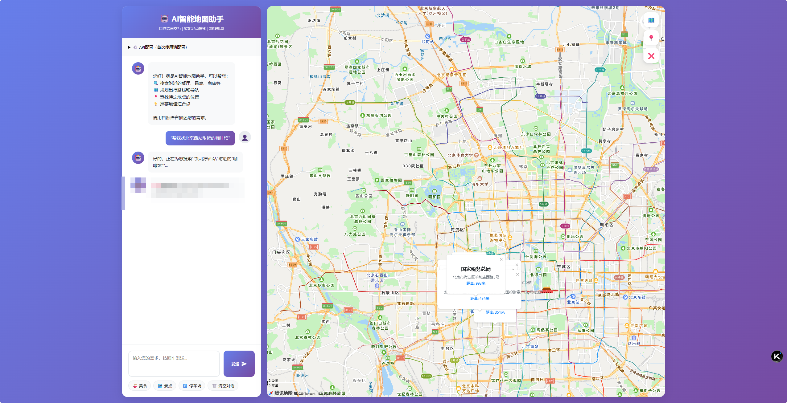 本项目旨在打造一个AI智能地图助手,实现: