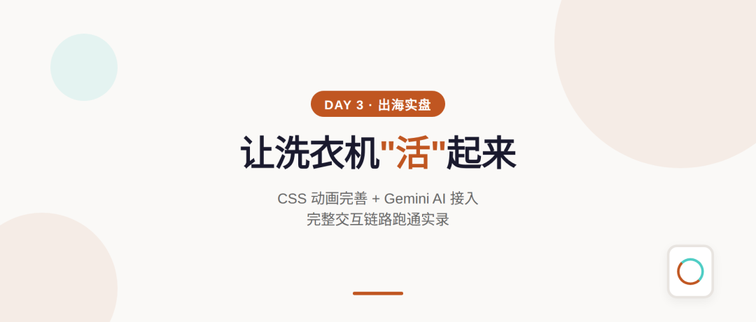同样的 Gemini API,别人做成一个输入框+加载圈+出图,我做成了"便签飞进去→洗衣机转起来→泡泡冒出来→图片跳出来"。