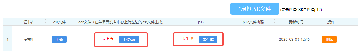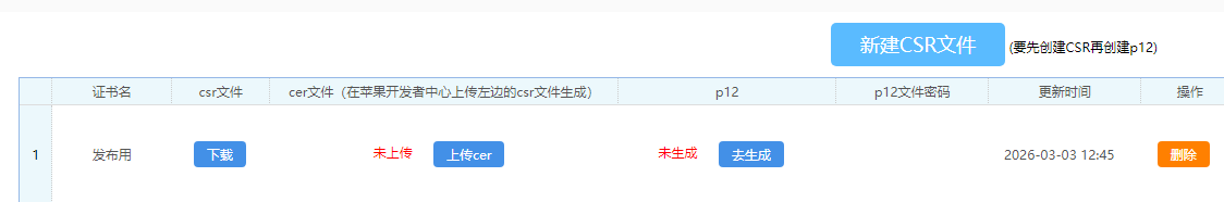 ios的签名证书,在云打包里,可以分为两种,一种是测试类型的签名证书,一种是发版类型的签名证书。