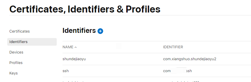 苹果里面的Idetifiers菜单,可以创建应用的ID, 也叫AppID,后面创建profile文件和app store里创建应用,都要关联这个AppId,假如是第一次创建profile文件,需要先创建AppID