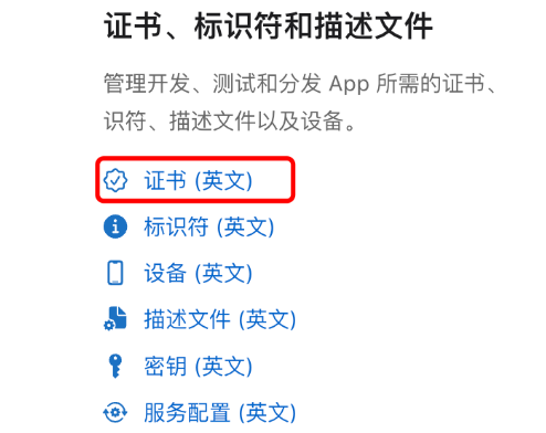 (4)在苹果开发者中心找到证书管理界面入口