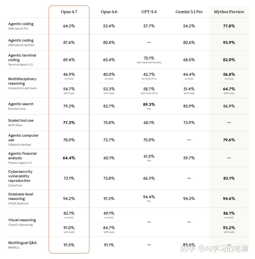 Claude Opus 4.7 跨领域 Benchmark 对比