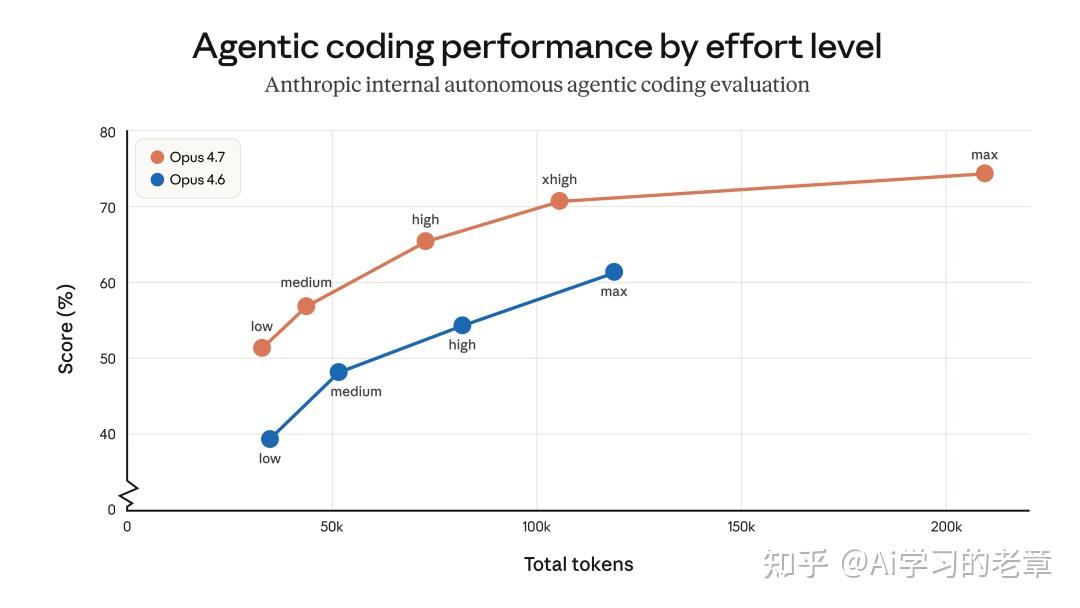 Opus 4.7 引入了全新的 xhigh(extra high)努力等级,介于原来的 high 和 max 之间