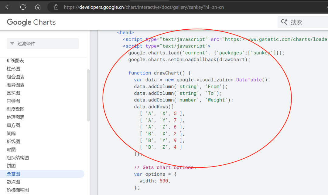 下图DAX调用google charts实现桑基图: