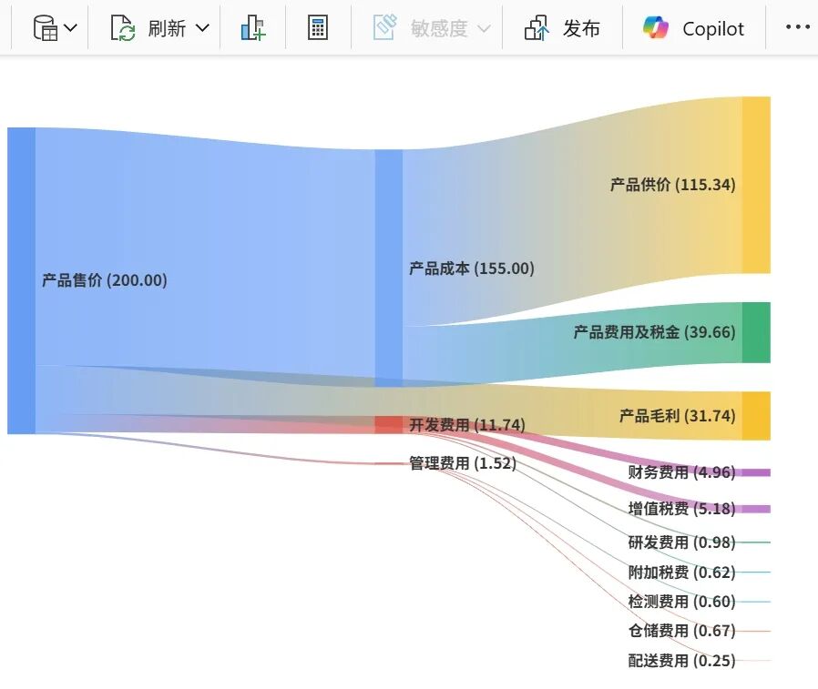 如果是财务类桑基图,图表度量值中的如下部分替换为你的财务指标名称以及具体数据指标度量: