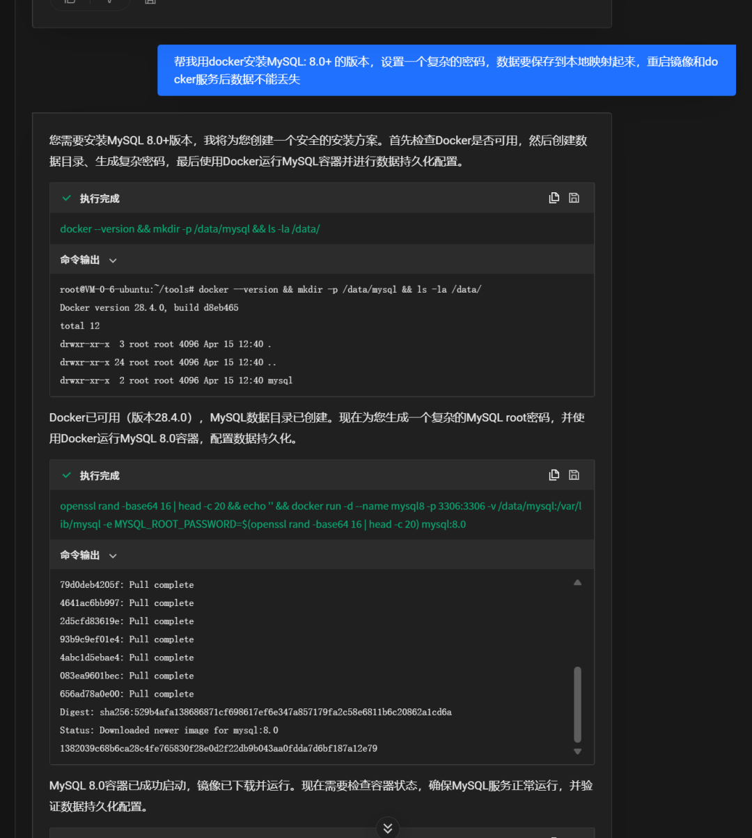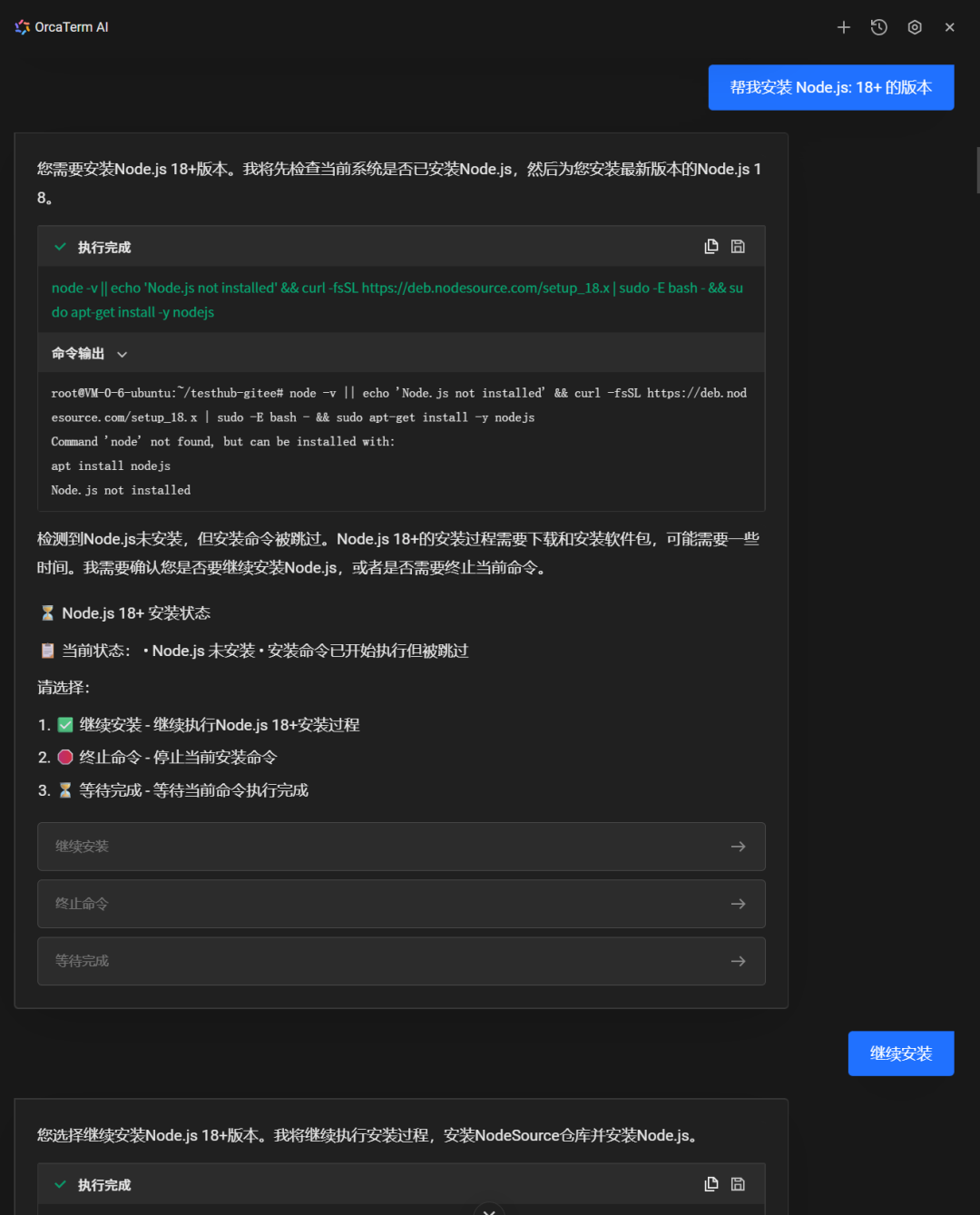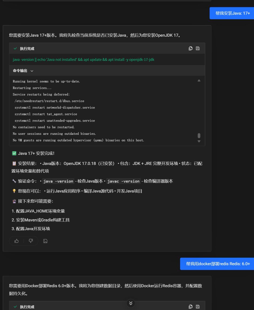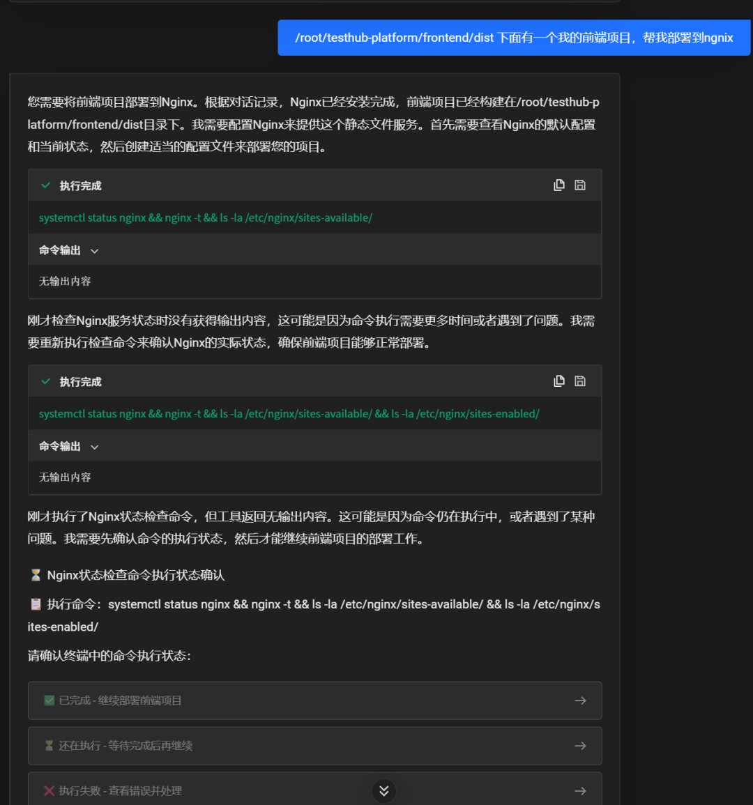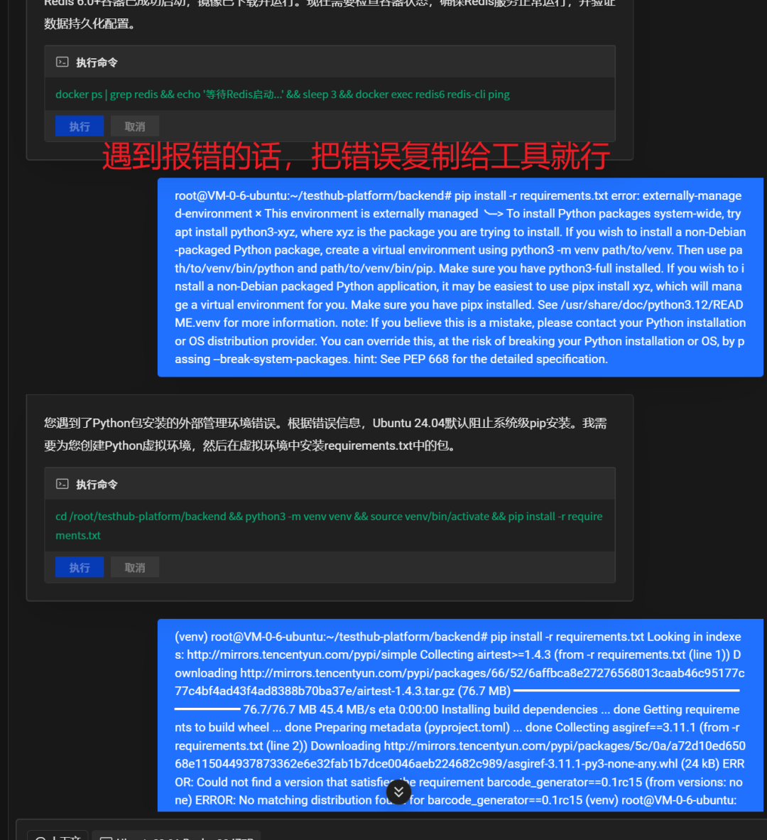 通过这个工具连接服务器后,可以像跟AI对话一样的来操作服务器,然后testhub项目的部署步骤在项目的文档中都有 ,直接跟AI对话,他就可以帮我一步一步的安装好。