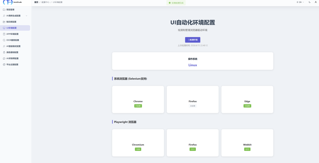 TestHub 是一个功能强大的智能测试管理平台,集成了 AI 需求分析、测试用例管理、API 测试、UI 自动化测试 等多个模块,旨在提升测试效率和质量。平台采用 Django + Vue3 技术栈,提供现代化的用户界面和丰富的功能特性。