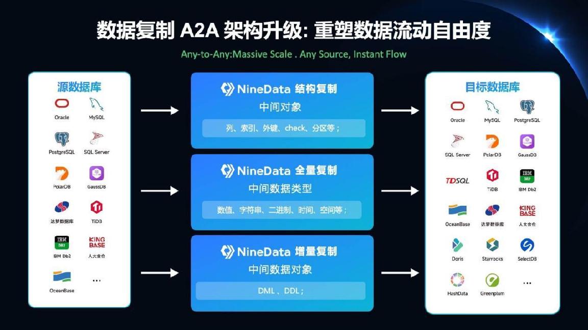 目前,NineData 的产品能力已经在运营商、能源电力、金融证券、制造车企、物流交通、医疗健康、人工智能、出海等核心行业完成规模化落地,服务了 1000 + 行业领先企业、数万开发者,纳管超 10 万数据库实例,支撑了 5 万 + 企业级迁移与复制任务。