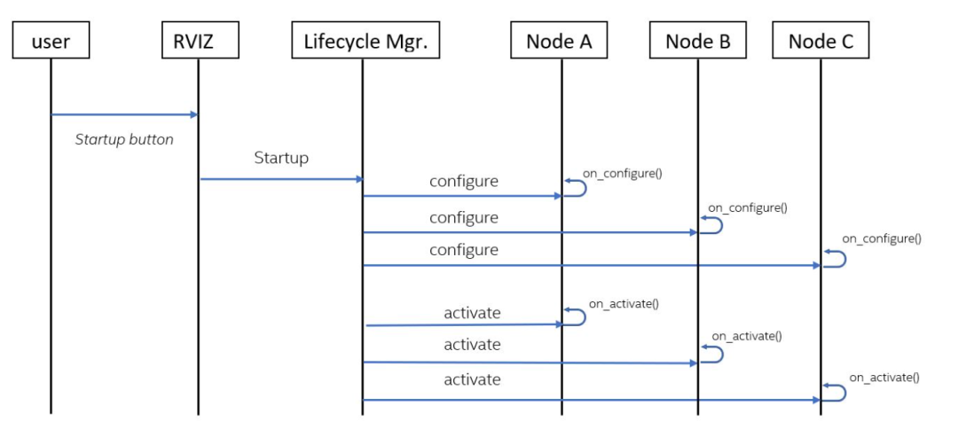 LifecycleManager 最重要的能力,是对系统进行“有序启动”。在一个典型系统中,它会先触发所有节点的 configure,然后按照依赖关系依次 activate。例如先启动传感器,再启动定位模块,最后启动规划与控制模块。通过这种方式,可以确保数据链路在每一个环节都是有效的。