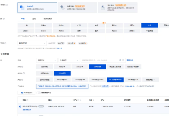 · NVIDIA V100(GN10Xp):32GB HBM2,NVLink 互联,中大规模 LLM 训练、多模态、科学计算,经典稳定,企业级主力