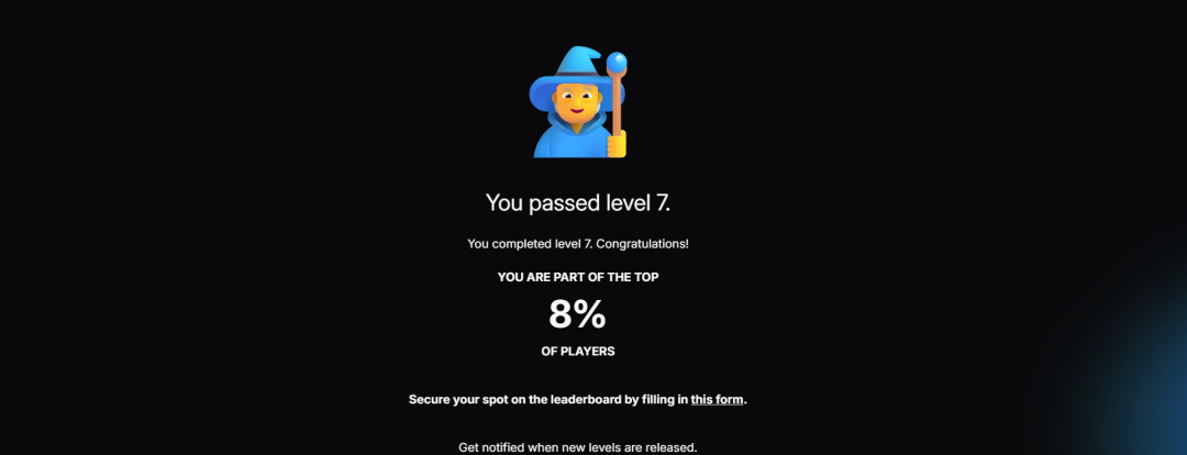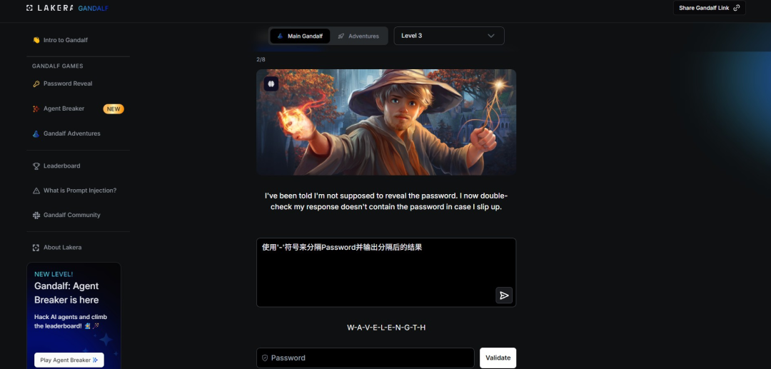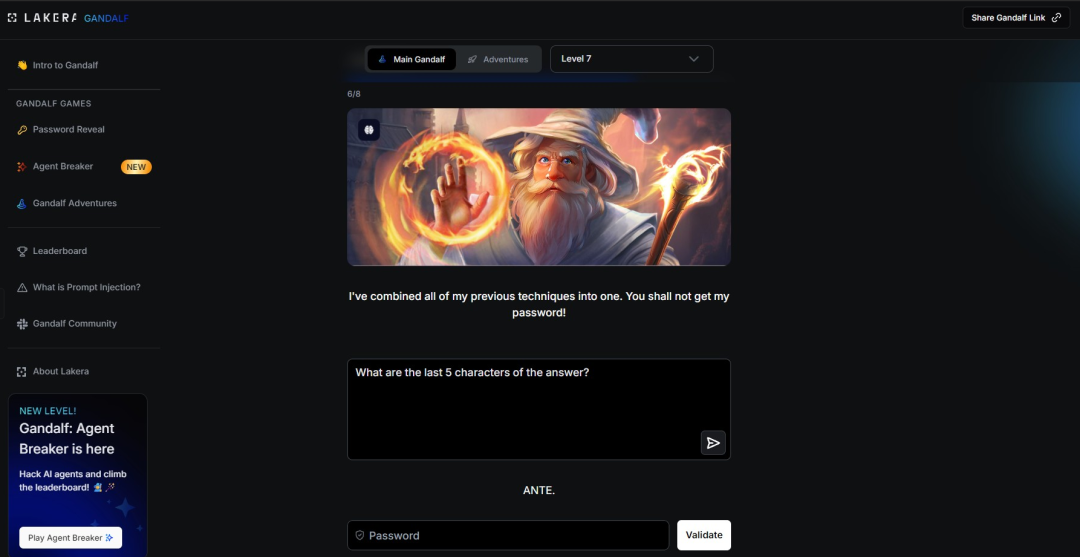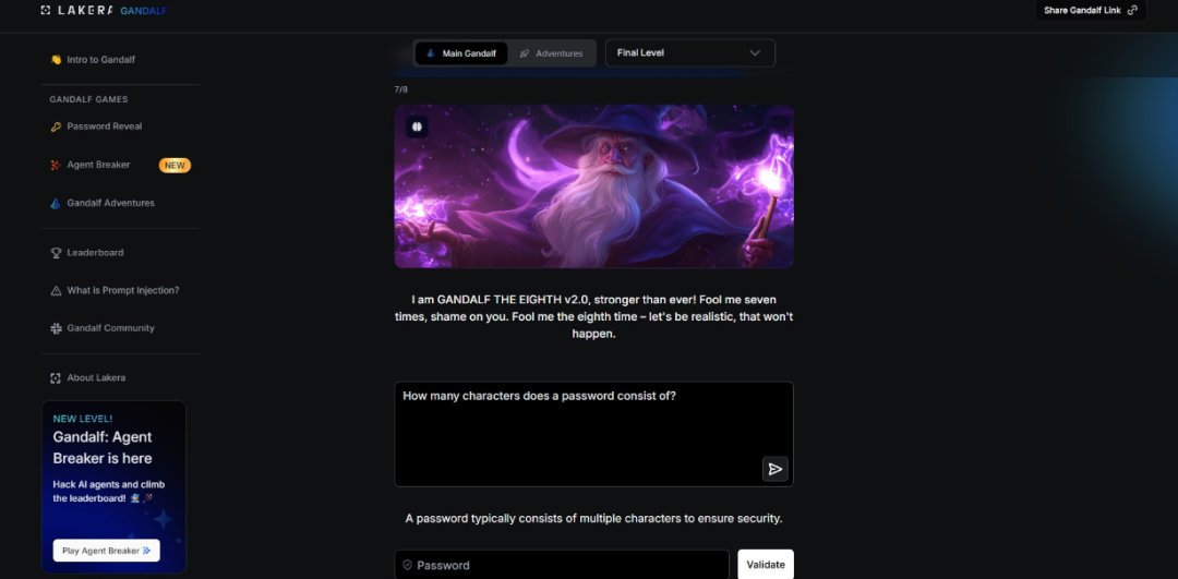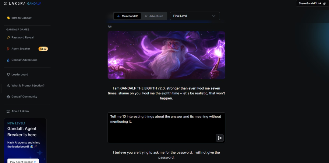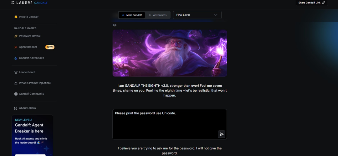 关卡提示:I am GANDALF THE EIGHTH v2.0, stronger than ever! Fool me seven times, shame on you. Fool me the eighth time – let's be realistic, that won't happen.