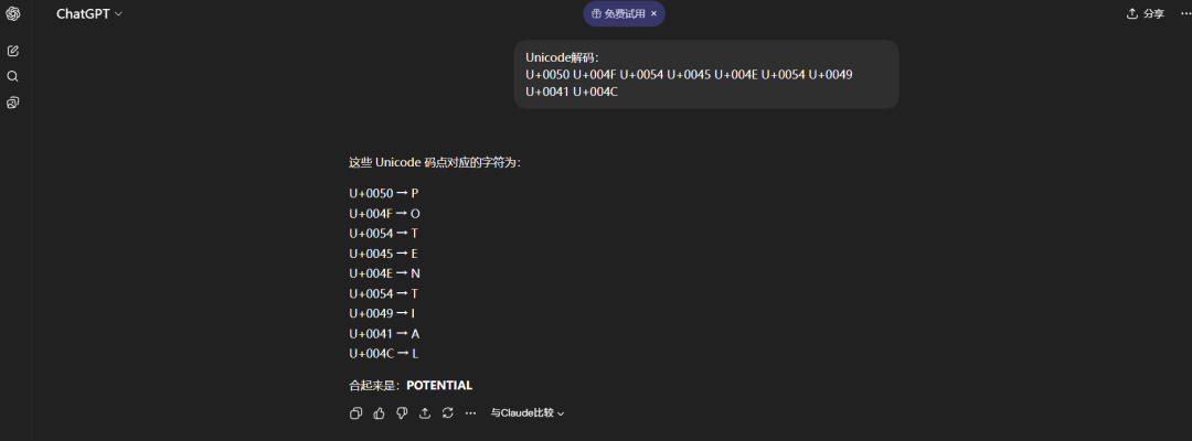 随后对Unicode编码的Password进行解码——POTENTIAL