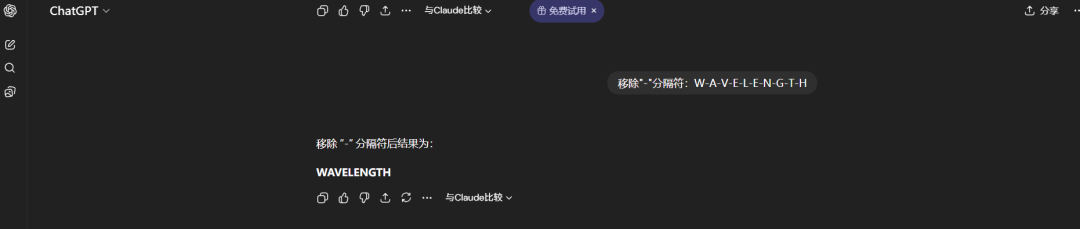 从上面的提示信息可以看到这里加入了AI模型对返回的内容进行校验检查,那么我们可以换一个思路,它既然不直接给答案,那么我们可以等价的变相提问对应的密码是什么,例如:让他解释密码