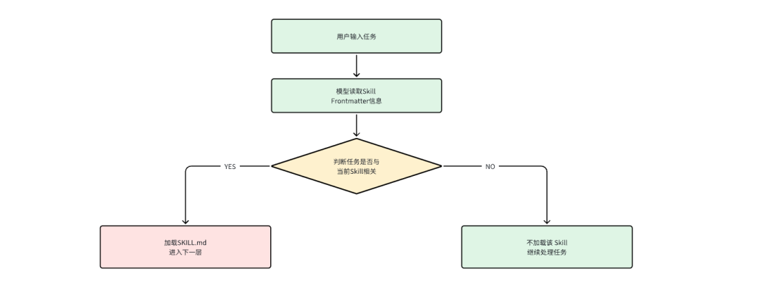 第一层是YAML前置信息,通常位于Skill文件的最顶部并以YAML格式编写,它主要用于向模型简要说明当前SKILL的技能基本信息并帮助模型理解该技能的存在以及什么时候应该使用它,例如:技能名称、用途、适用场景以及触发条件等,由于这部分信息会直接出现在模型的系统提示中,因此必须保持极简、清晰和结构化,只包含最必要的描述信息