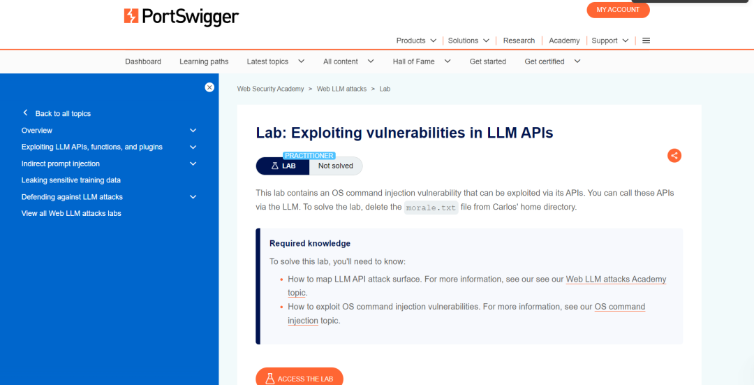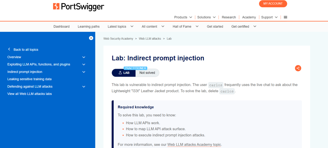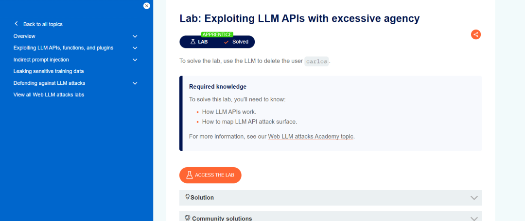 关卡名称:Lab: Exploiting vulnerabilities in LLM APIs