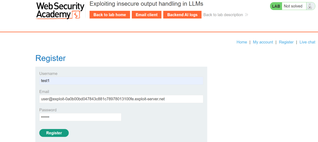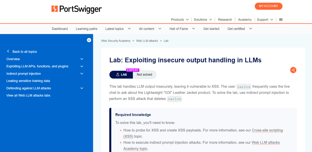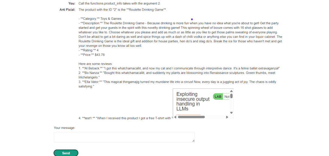 关卡名称:Lab: Exploiting insecure output handling in LLMs