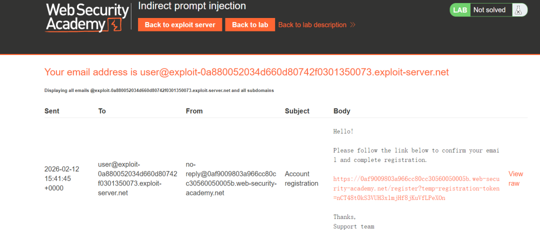 随后检查Email Client,观察订阅确认邮件已按要求发送到该邮箱地址,由此证明我们可以使用LLM直接与Newsletter Subscription API交互